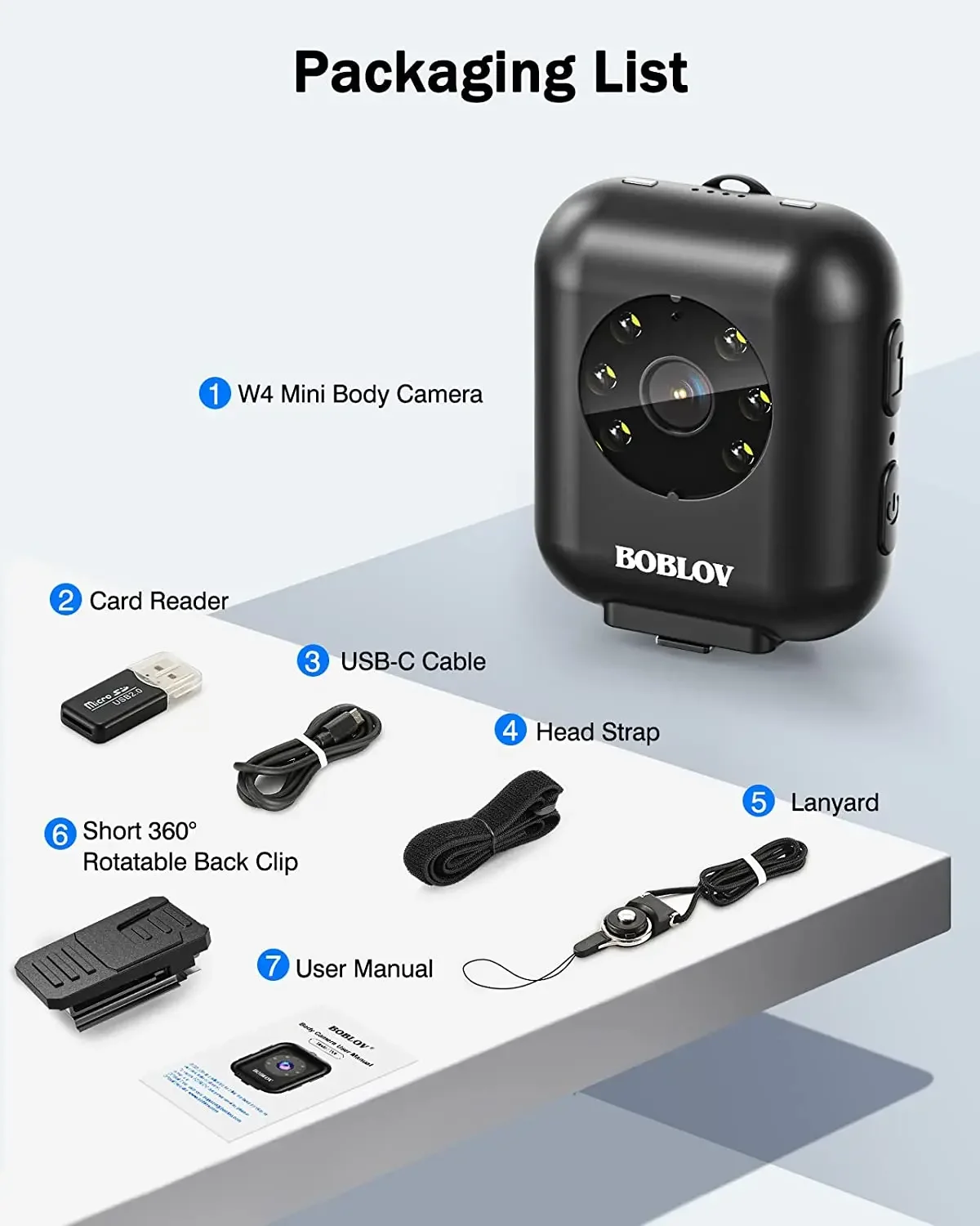 Câmera BOBLOV W4 usada no corpo, câmera de vídeo 1080P de 64 GB, memória expandida, bateria de 950mAh para gravação de vídeo de 5 horas, suporte para carimbo de data e hora, para montagem na cabeça com alça e clipe curtoCaracterísticas:Câmera acessível: câmera 1080P usada no corpo para fotografia diária, palestras, reuniões, caminhadas, escaladas, patinhos, passeios