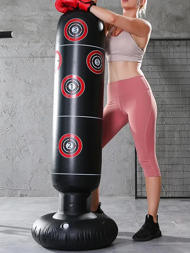 Nosso saco de boxe Fácil de operar, sua base pode ser enchida com água, areia ou arroz seco, e o restante pode ser inflado diretamente para uso.Pode ser esvaziado e dobrado para armazenamento após liberar o ar e a água/areia/arroz seco, pronto para jogar outra vez.